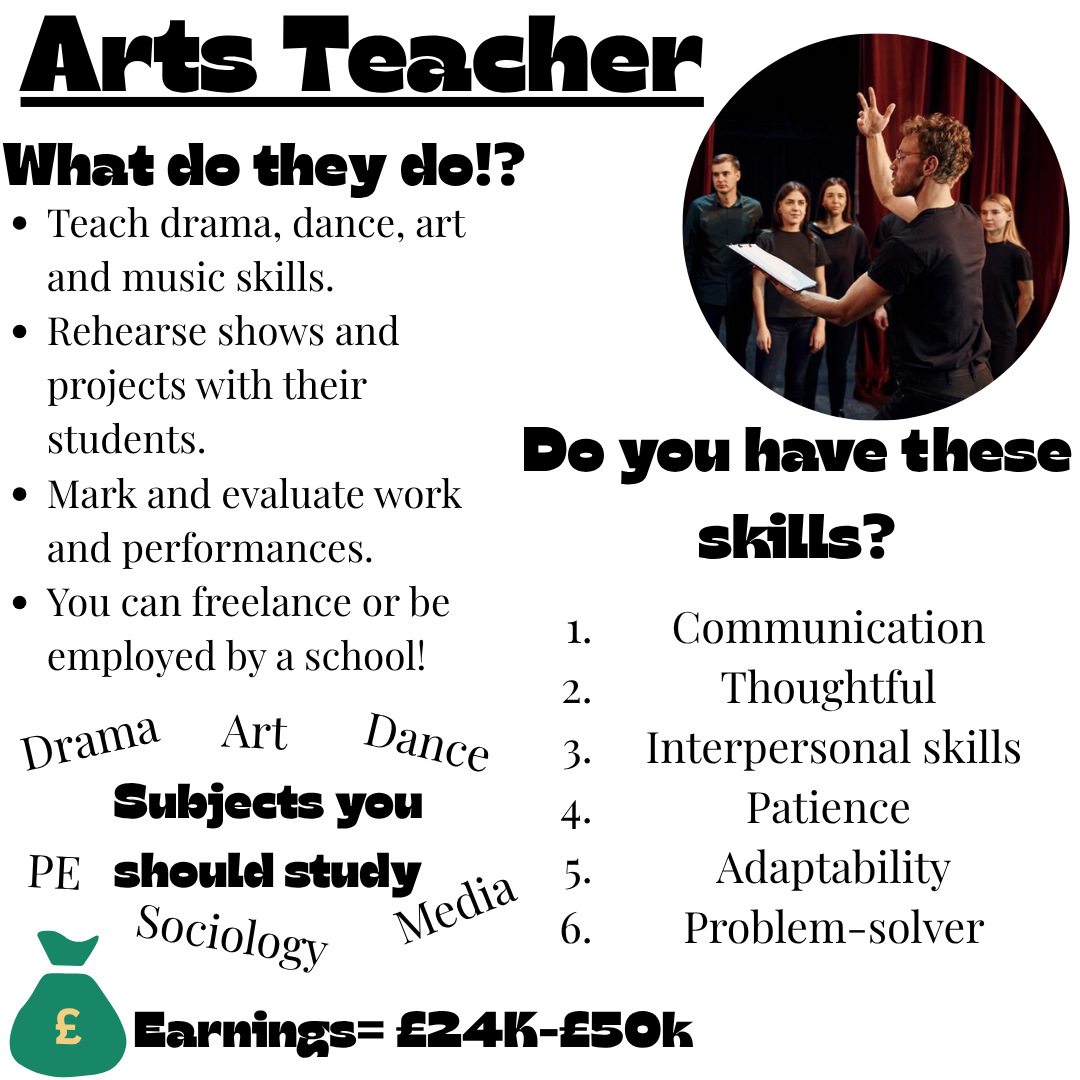 Here are just a few examples of careers you could aim towards if you would like a job in the arts: